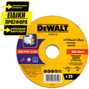 ΔΙΣΚΟΙ DEWALT DT20593 115Χ1 INOX ΣΕΤ 25ΤΕΜ