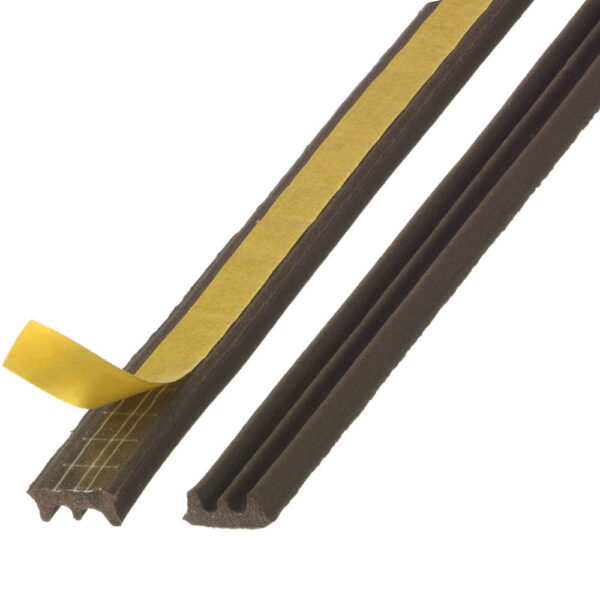 Αυτοκόλλητη ταινία EPDM με ελαστικότητα τύπου αεροστόπ. Σχήματος προφίλ Ε. Αντοχή στην ηλιακή ακτινοβολία, την υγρασία και τους ατμοσφαιρικούς ρύπους. Επιπλέον, αντοχή στη γήρανση για 6-8 χρόνια. Σταματά το κρύο, τη ζέστη, τη σκόνη, το θόρυβο κλπ.