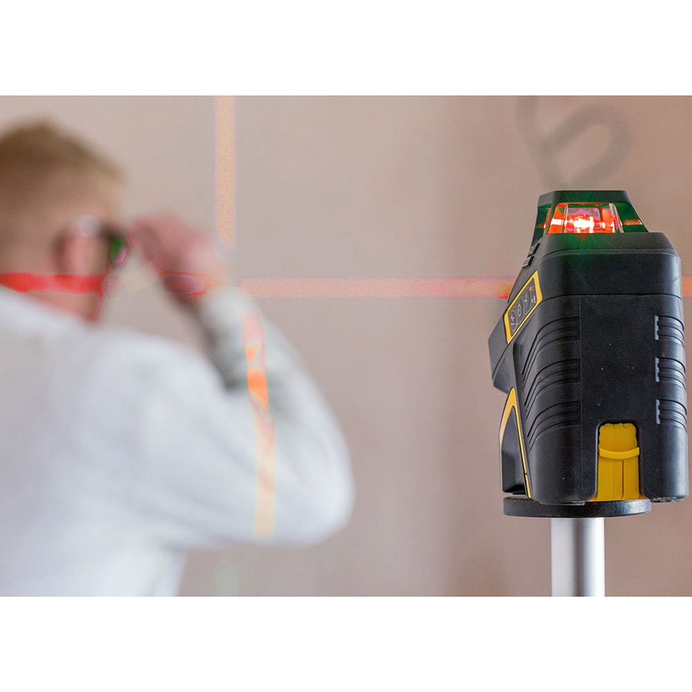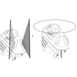 Αυτοεπιπεδούμενο-περιστρεφόμενο (οριζόντια και κάθετη δέσμη), χρησιμοποιεί ακτίνα παλμού laser. Προβολή περιστρεφόμενης γραμμής, 2 κατακόρυφων με διαφορά 120 μοιρών και ενός κάθετου σημείου. Σύστημα ειδοποίησης όταν απορρυθμίζεται, 5/8 & 1/4 σπείρωμα για τρίποδο, ενσωματωμένος μαγνήτης επιτρέπει την άμεση στερέωση σε μεταλλικές επιφάνειες.