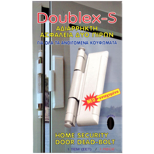 Όταν το ασφαλίζουμε κουμπώνει με δύο πίρους έναν από πάνω και έναν από κάτω, ούτως ώστε η αντίσταση των βιδών να μοιράζεται σε όλες. Έτσι πετυχαίνουμε τη μέγιστη αντιδιαρρηκτική ασφάλιση σε κάθε τύπο ΑΝΟΙΓΟΜΕΝΟΥ ΚΟΥΦΩΜΑΤΟΣ: μονόφυλλου, δίφυλλου, αλουμινίου, σιδήρου, ξύλου ή PVC. Ακόμη το χρησιμοποιούμε και για μεσόπορτες γιατί σύμφωνα με τις σημερινές συνθήκες προέχει η ΑΣΦΑΛΕΙΑ όταν είμαστε μέσα στο σπίτι. Διατίθεται σε χρώματα: Λευκό, Μαύρο, Καφέ, Ασημί
