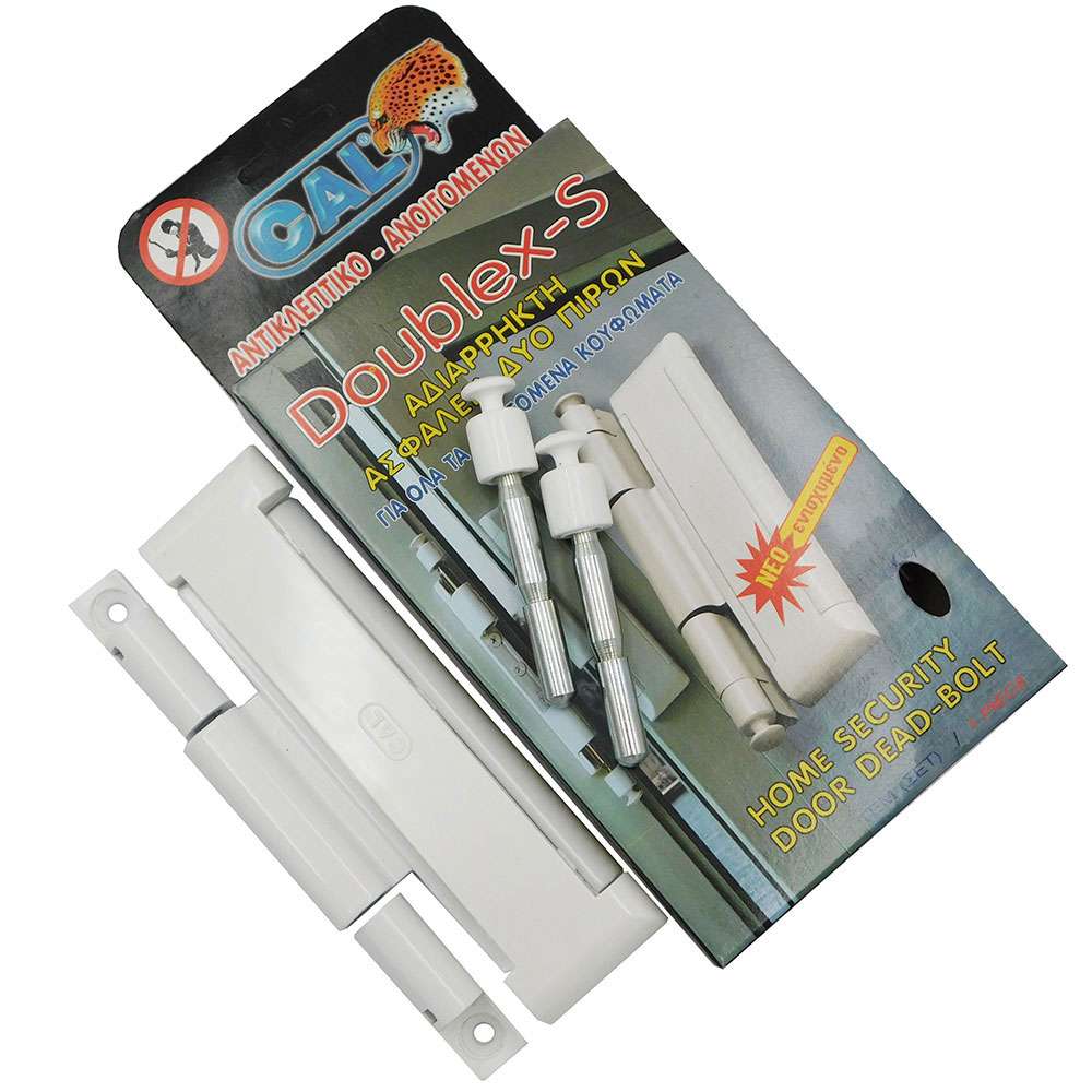 Όταν το ασφαλίζουμε κουμπώνει με δύο πίρους έναν από πάνω και έναν από κάτω, ούτως ώστε η αντίσταση των βιδών να μοιράζεται σε όλες. Έτσι πετυχαίνουμε τη μέγιστη αντιδιαρρηκτική ασφάλιση σε κάθε τύπο ΑΝΟΙΓΟΜΕΝΟΥ ΚΟΥΦΩΜΑΤΟΣ: μονόφυλλου, δίφυλλου, αλουμινίου, σιδήρου, ξύλου ή PVC. Ακόμη το χρησιμοποιούμε και για μεσόπορτες γιατί σύμφωνα με τις σημερινές συνθήκες προέχει η ΑΣΦΑΛΕΙΑ όταν είμαστε μέσα στο σπίτι. Διατίθεται σε χρώματα: Λευκό, Μαύρο, Καφέ, Ασημί
