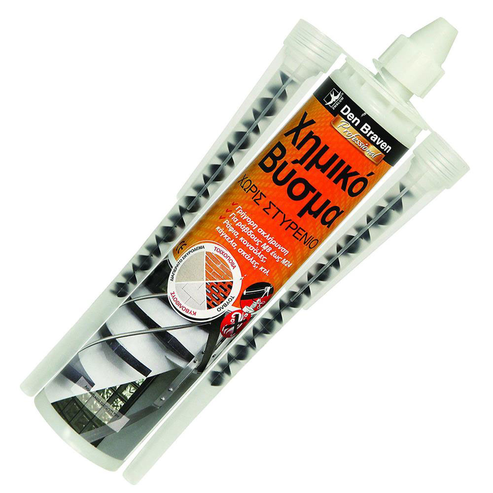 - Δύο συστατικών επαγγελματικό χημικό σύστημα αγκύρωσης πολυεστερικής βάσης. Εξαιρετικής ποιότητας, χωρίς στυρένιο. Για γρήγορη εφαρμογή με ισχυρή συγκράτηση. Σταθεροποιεί ντίζες και μπουζόνια σε δομικά στοιχεία. Eύκολο στην εφαρμογή. Υψηλή αντοχή στα χημικά και στα μεγάλα φορτία. Σύμφωνα με ETAG 001