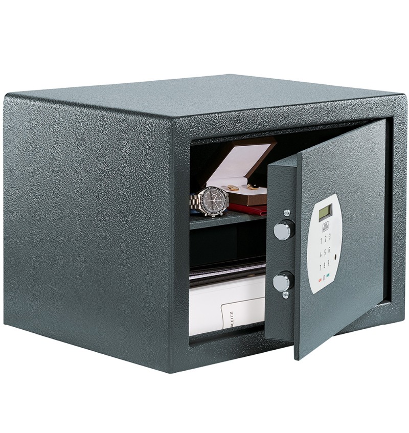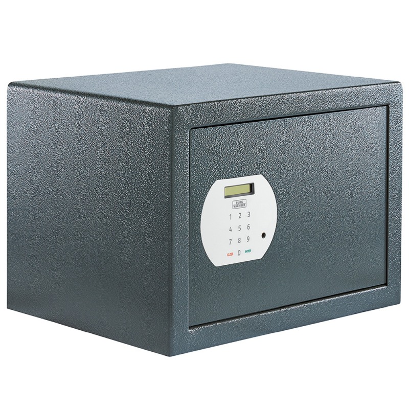 Δοκιμασμένο στο εργαστήριο BURG-WÄCHTER. Συμπαγές μονοτοιχωματικό σώμα. Πόρτα με διπλά τοιχώματα Ηλεκτρονική κλειδαριά συνδυασμού: αυτοπρογραμματιζόμενοι γενικοί κωδικοί και κωδικοί χρήστη. Εξωτ.διαστ.:320 x 440 x 350 Εσωτ. διαστ.:316 x 433 x 293