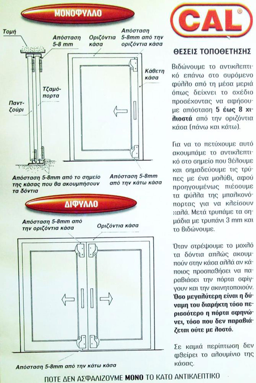 Προϊόν που επίσης το συνιστούν ΟΙ ΑΣΦΑΛΙΣΤΙΚΕΣ ΕΤΑΙΡΙΕΣ ακόμη και η Αστυνομία κατά των διαρρήξεων, για τις συρόμενες μπαλκονόπορτες και παράθυρα. Διατίθεται σε χρώματα:Λευκό, Μαύρο, Καφέ, Ασημί