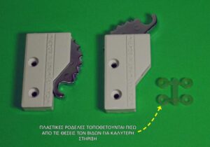Πολύ γνωστός μηχανισμός ασφάλισης συρομένων από το 1990. Τοποθετείται από ένα στις δυο γωνίες του συρομένου φύλλου στην πλευρά του κλειδώματος και απέχει 5- 8 mm από την πάνω και κάτω κάσα. Όταν το ασφαλίζουμε, τα δόντια ακουμπούν απλά στην κάσα, αλλά αν γίνει προσπάθεια διάρρηξης, το φύλλο σφηνώνει και δεν παραβιάζεται ούτε με λοστό γιατί λειτουργεί με την ανάδραση δηλ. με την δύναμη του διαρρήκτη.