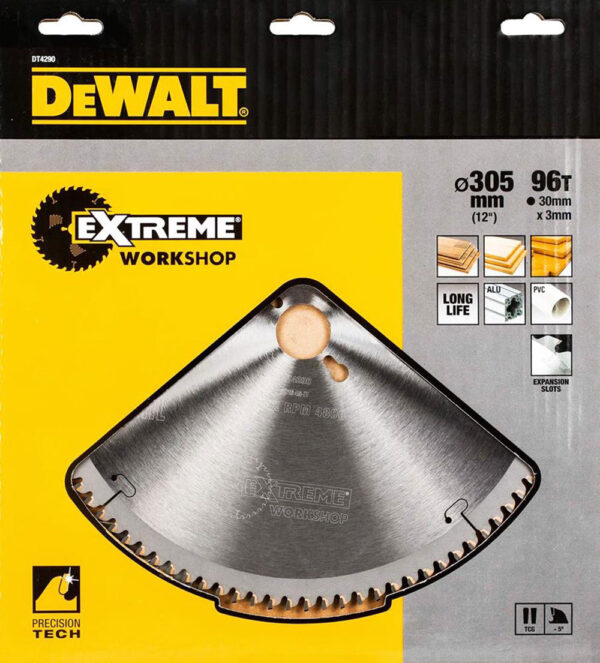 Επαγγελματικός δίσκος κοπής dewalt extreme 96 δοντιών. Ιδανικός για γρήγορες κοπες ακριβείας ξύλου, μοριοσανίδας και ικανός για κοπή αλουμινίου & pvc. Μεγάλη διάρκεια ζωής