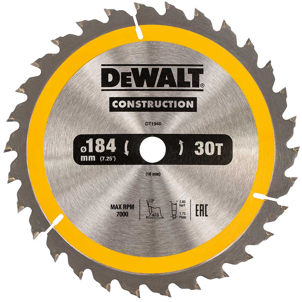ΔΙΣΚΟΙ ΞΥΛΟΥ DEWALT DT1940 184mm Φ16 ΜΕ 30 ΔΟΝΤΙΑ ATB