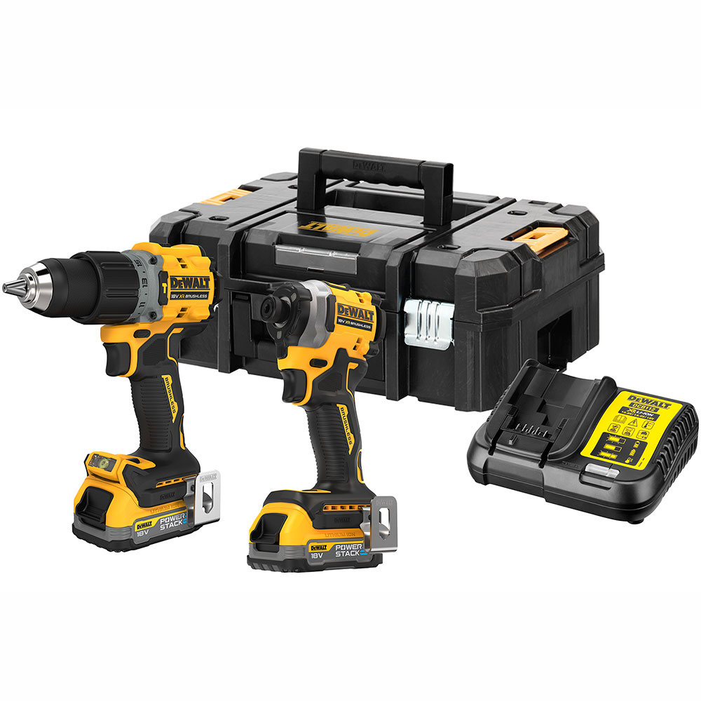 Επαγγελματικό σε νέας σειράς DEWALT ATOMIC BRUSHLESS. Περιέχει DCD805 κρουστικό δραπ/βιδο, DCF850 παλμικό κατσαβίδι, φορτιστή, 2×1.7Ah μπαταρίες POWERSTACK , βαλίτσα TSTAK