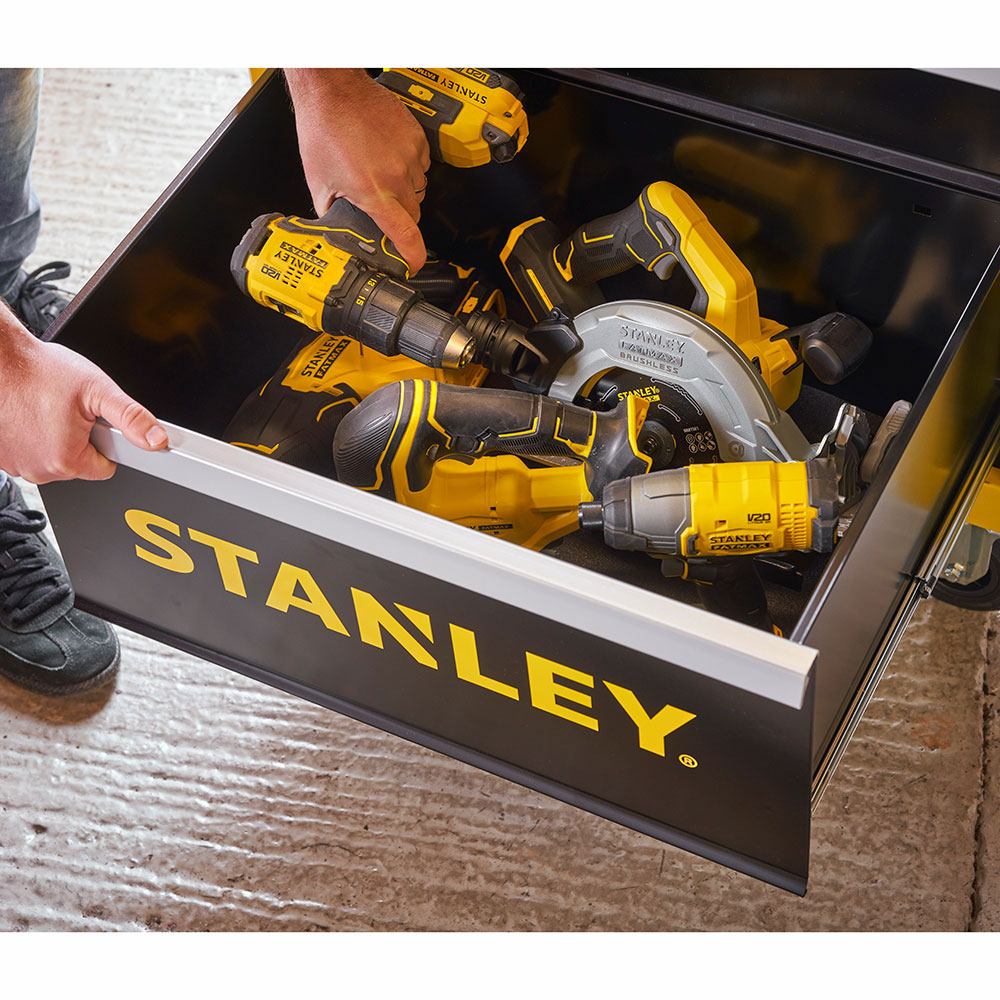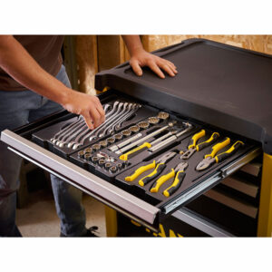 Ο τροχήλατος εργαλειοφόρος συνεργείου “STANLEY® 5” κατασκευάζεται στην Γαλλία και εστιάζει στην οργάνωση των εργαλείων και των αξεσουάρ σας, διαθέτοντας 1 βαθύ, 1 μεσαίο και 3 ρηχά συρτάρια με ρουλεμάν ολίσθησης.Ικανότητα φόρτωσης: 300kg. Διαθέτει μηχανισμό κλειδώματος. Διαστάσεις: L735mm x D515mm x H890mm