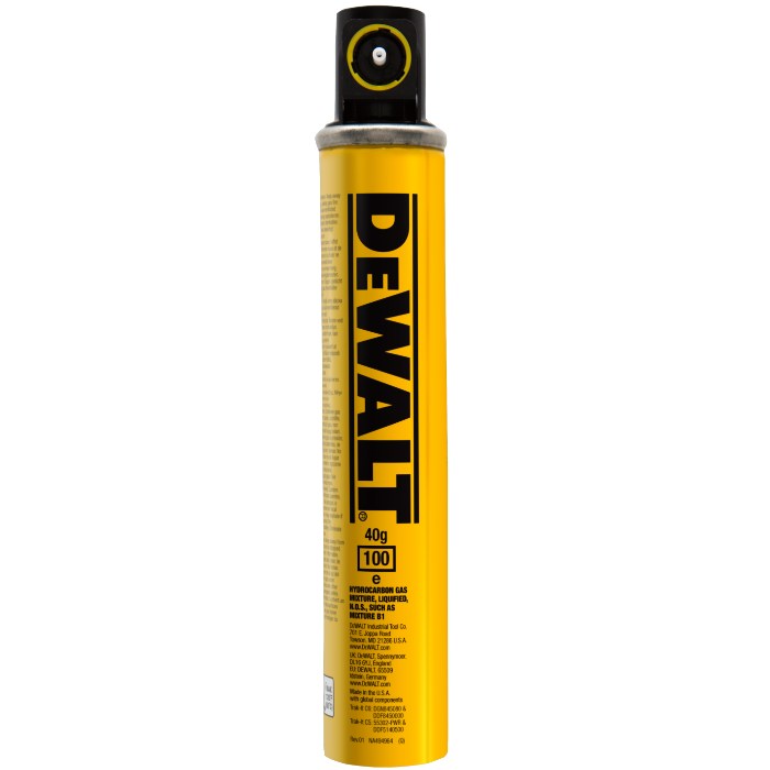 Φιάληαερίου κατάλληλη για καρφωτικό Dewalt DGN845, απόδοση 1000 βολές, βάρος 40gr. Διαθέτει καπάκι ασφαλείας για μεταφορά και έχει διάρκεια ζωής 2 χρόνια.