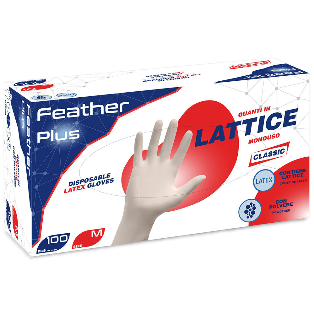 Γάντια latex μιας χρήσης, αμφιδέξια. Άσπρο χρώμα με πούδρα μίας χρήσεως