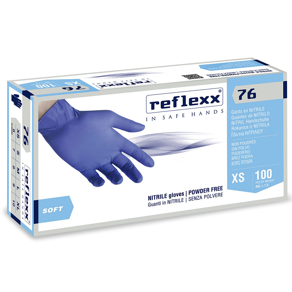 Γάντια νιτριλίου μιας χρήσης, αμφιδέξια. Μπλε χρώμα χωρίς πούδρα μίας χρήσεως