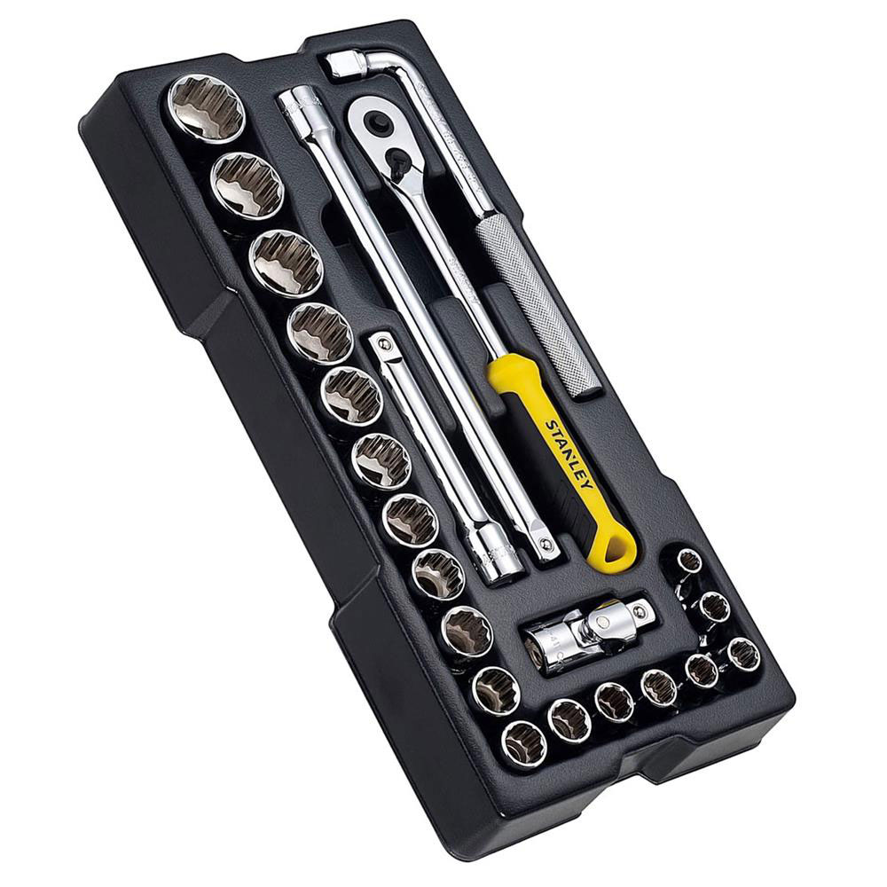 1 πολύσπαστο, 1 καστάνια. 2 προεκτάσεις 125 mm & 250 mm, 1 αντάπτορα L - Συμβατό με: μεταλλικές εργαλειοθήκες STST1-75507, STST1-75508, STST1-75509, STST1-75510