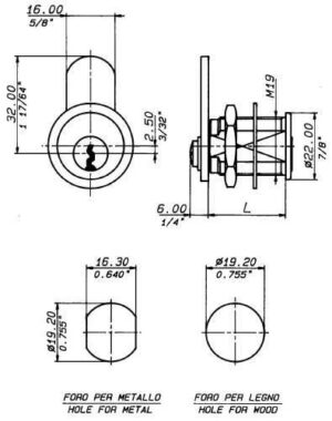 Rotating 90°L (1 key pull), mm 25, KA keyed alike, Nickel plated brass (US14)