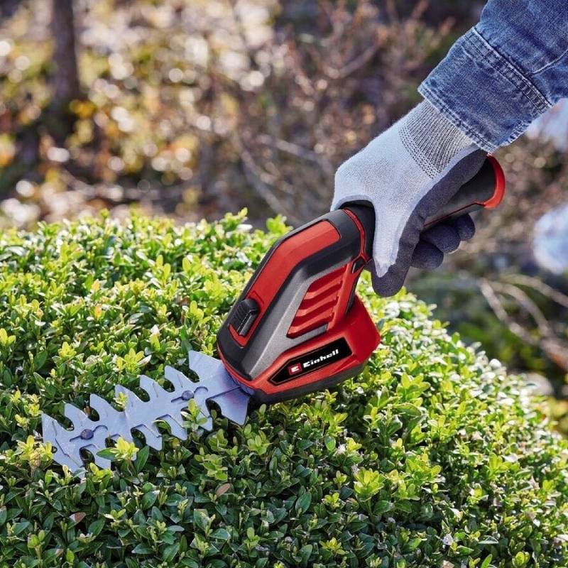 Ενσωματωμένη μπαταρία Ιόντων Λιθίου 3,6V/2.0Ah. Πλάτος κοπής χλόη 70mm/θάμνος110mm. Περιλαμβάνει 2 λάμες, φορτιστή & τηλεσκοπική λαβή με τροχούς