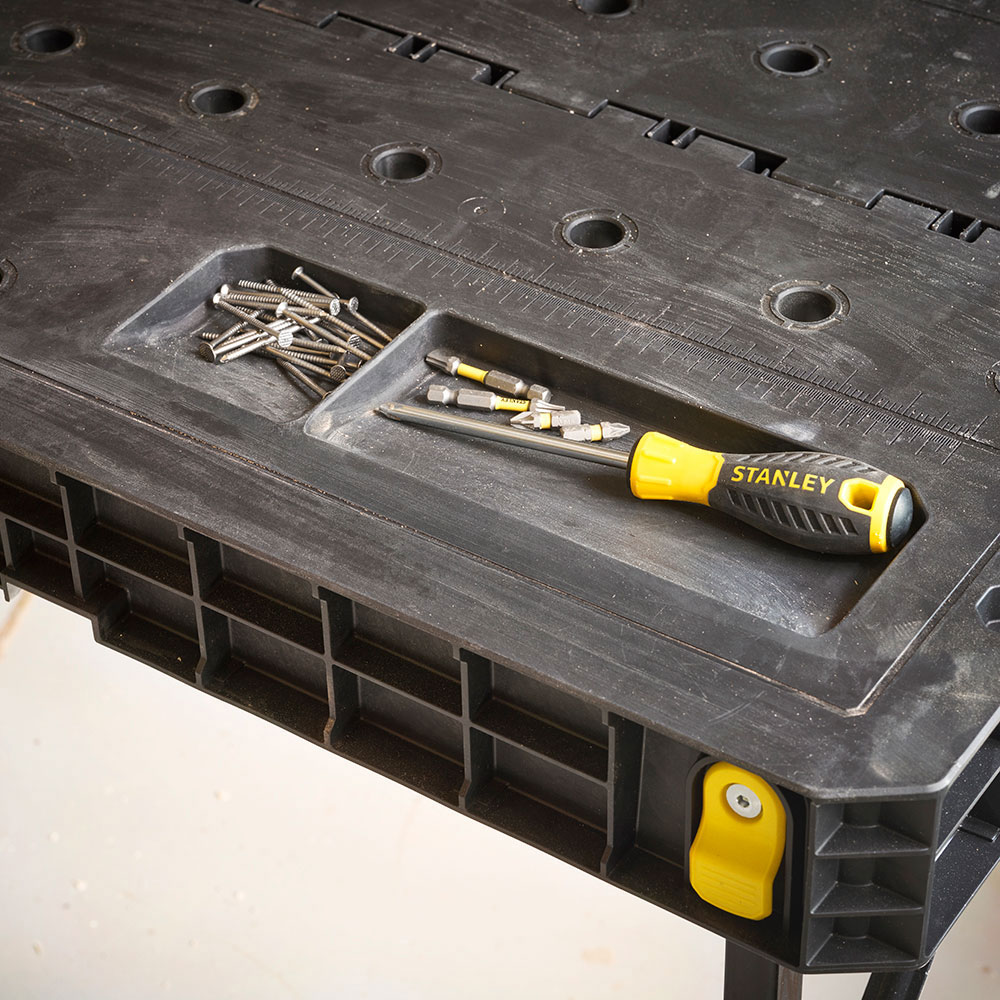 - Διπλώνει η επιφάνεια εργασίας και τα πόδια εξασφαλίζοντας εύκολη μεταφορά και αποθήκευση