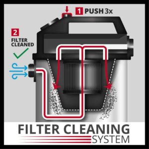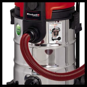 Πρίζα για σύνδεση ηλ. εργαλείων έως 2.200 W με λειτουργία συνγχρονισμού εκκίνησης, Δυνατό μοτέρ με 50% χαμηλότερη κατανάλωση ενέργειας, Αθόρυβο, Λειτουργεί και σαν φυσητήρας, Λάστιχο αναρρόφησης 3 m, Βαλβίδα εξαγωγής νερού, Ανοξείδωτο μεταλλικό τηλεσκοπικό σωλήνα Ø 36 mm, Μεγάλες ρόδες, Ενσωματωμένη βάση στήριξης των αξεσουάρ, Ενσωματωμένη βάση για το καλώδιο, καλώδιο ρεύματος 5 m.