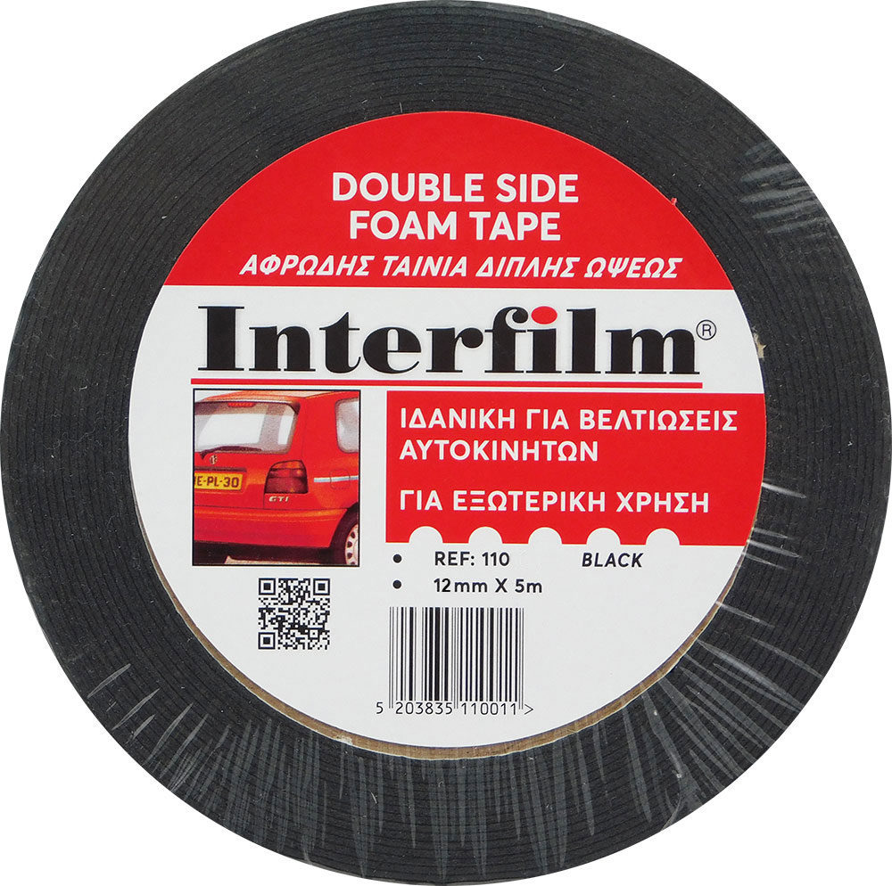 ΤΑΙΝΙΕΣ ΔΙΠΛΗΣ ΟΨΕΩΣ ΑΥΤΟΚΟΛΛΗΤΕΣ 110 ΑΦΡΩΔΕΙΣ ΜΑΥΡΕΣ 12mm X 5m