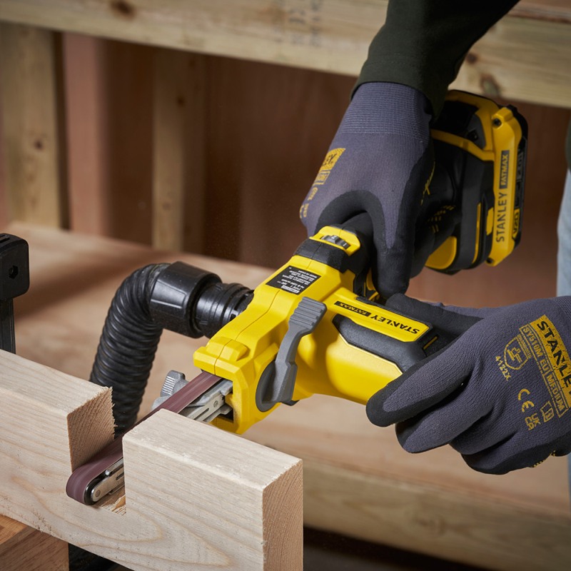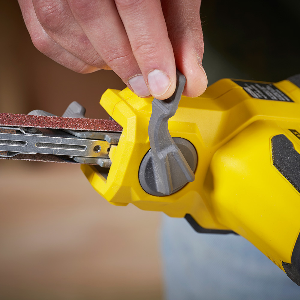 Τριβείο ταινίας 18V χρίς φορτιστή & μπαταρίες. Πλάτος ταινίας 13mm ιΙδανικό για εργασία σε δυσπρόσιτα – στενά σημεία. Περιλαμβάνει 3 ταινίες