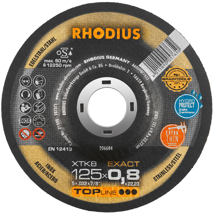 ΤΡΟΧΟΙ RHODIUS ΧΤΚ8/125Χ0.8 INOX ΤΟΡ