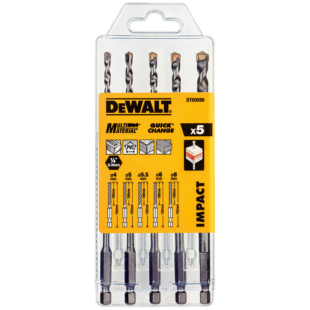 ΤΡΥΠΑΝΙΑ QUICK CHANGE ΠΟΛΛΑΠΛΩΝ ΥΛΙΚΩΝ.Δίκοπα με μύτη καρβιδίου Για ξύλο,τοίχο,τούβλο,pvc. Σετ 5τεμ. Πλαστική θήκη περιλαμβάνει: 152mm 4.0/5.0/5,5/6.0/8.0mm